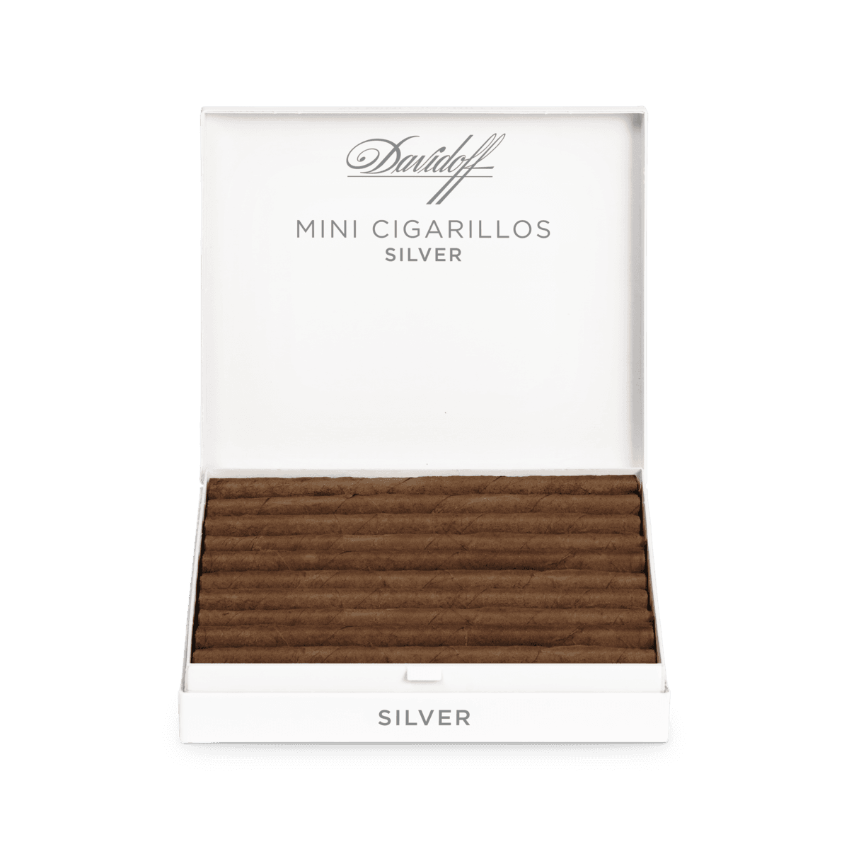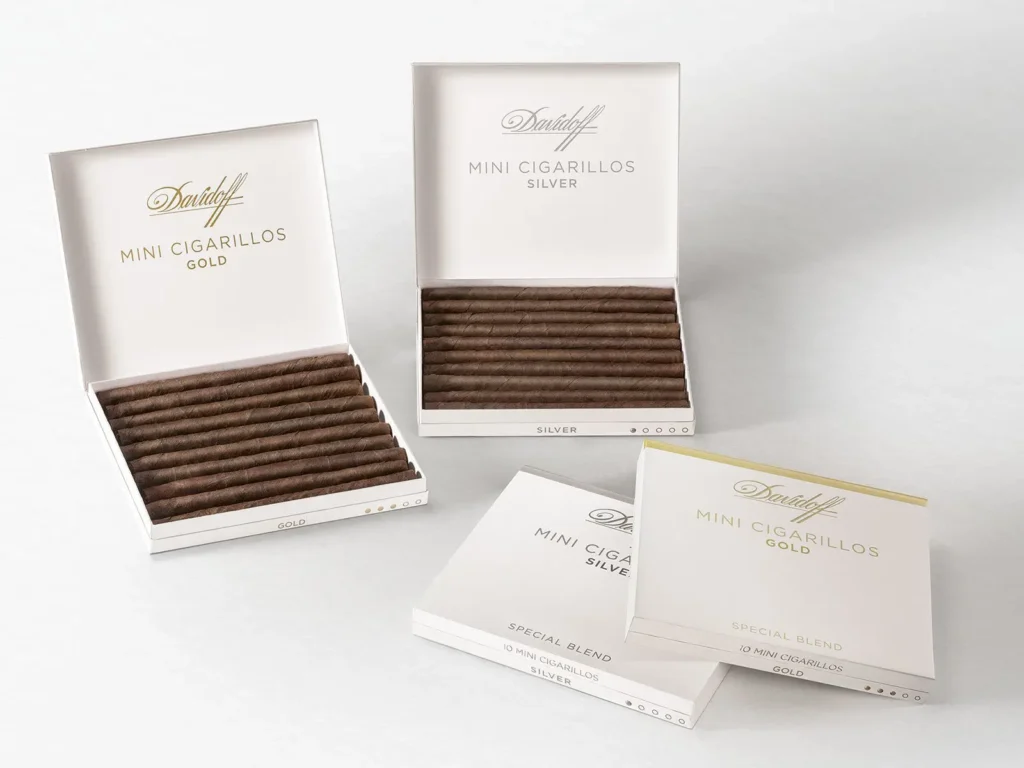 The Davidoff Mini Cigarillos Silver are every breath as harmonious as the original Mini Cigarillos, but propose a deliberately milder and less spicy enjoyment by using primings – or leaves – from the lower part of the tobacco plant. This dominance of lighter varieties of tobacco from Indonesia, Brazil and the Caribbean with a Sumatra wrapper creates a smooth, aromatic cigarillo that fills any time beautifully.